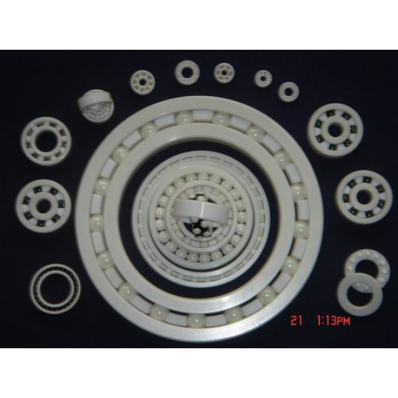 1. 材質:氧化鋯、氮化硅 2. 款式:滿珠球、陶瓷保持架、混合陶瓷球之軸承 3. 特性:全陶瓷軸承具抗磁電絕緣、耐磨耐腐蝕、無油自潤滑、耐 高溫耐高寒等特點,可用於極度惡劣環境及特殊狀況。 4. 本公司有專人提供各種不同材質、款式、特性之陶瓷軸承的詳細 內容說明